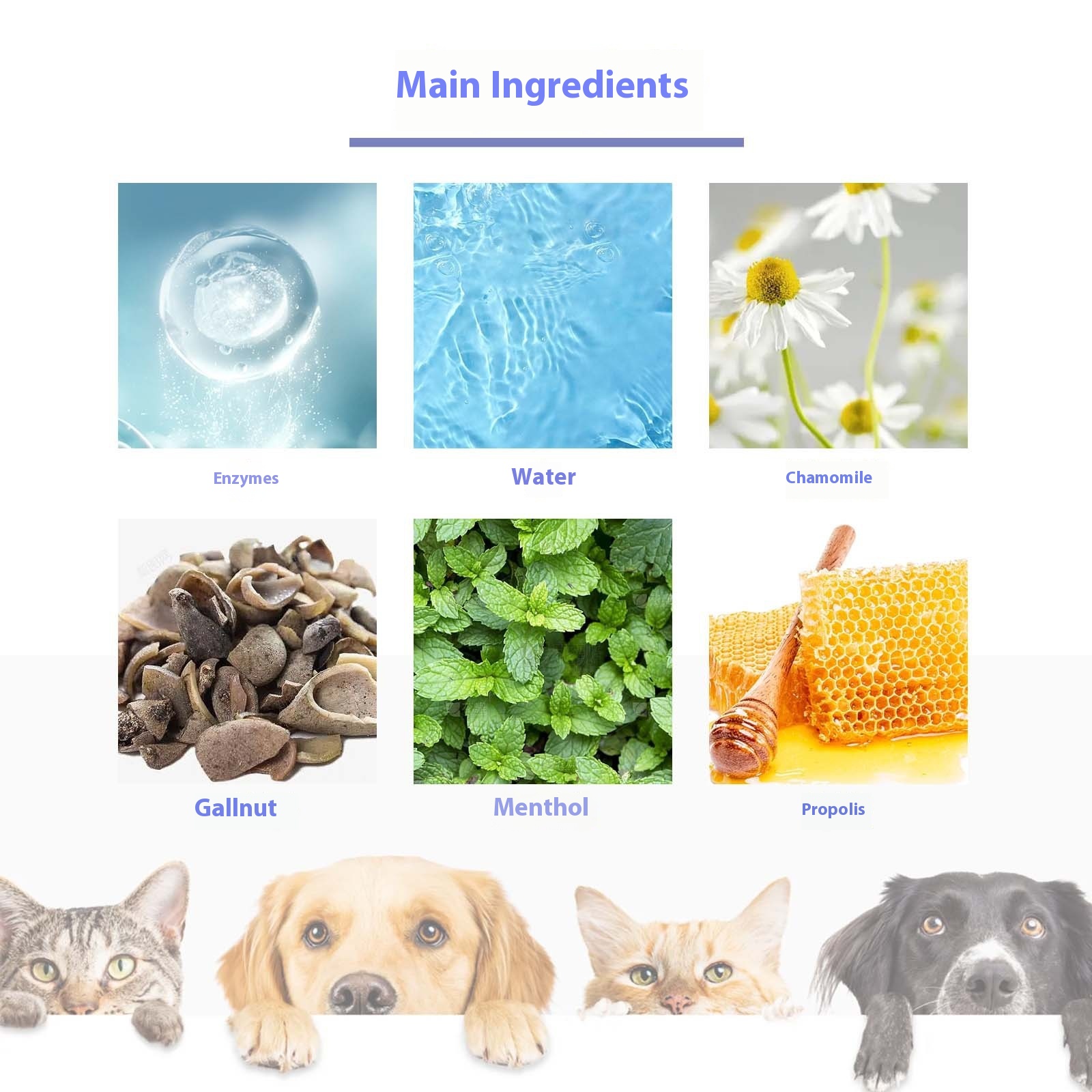 Product ingredients: Enzyme, water, German chamomile, gallnut, menthol, propolis